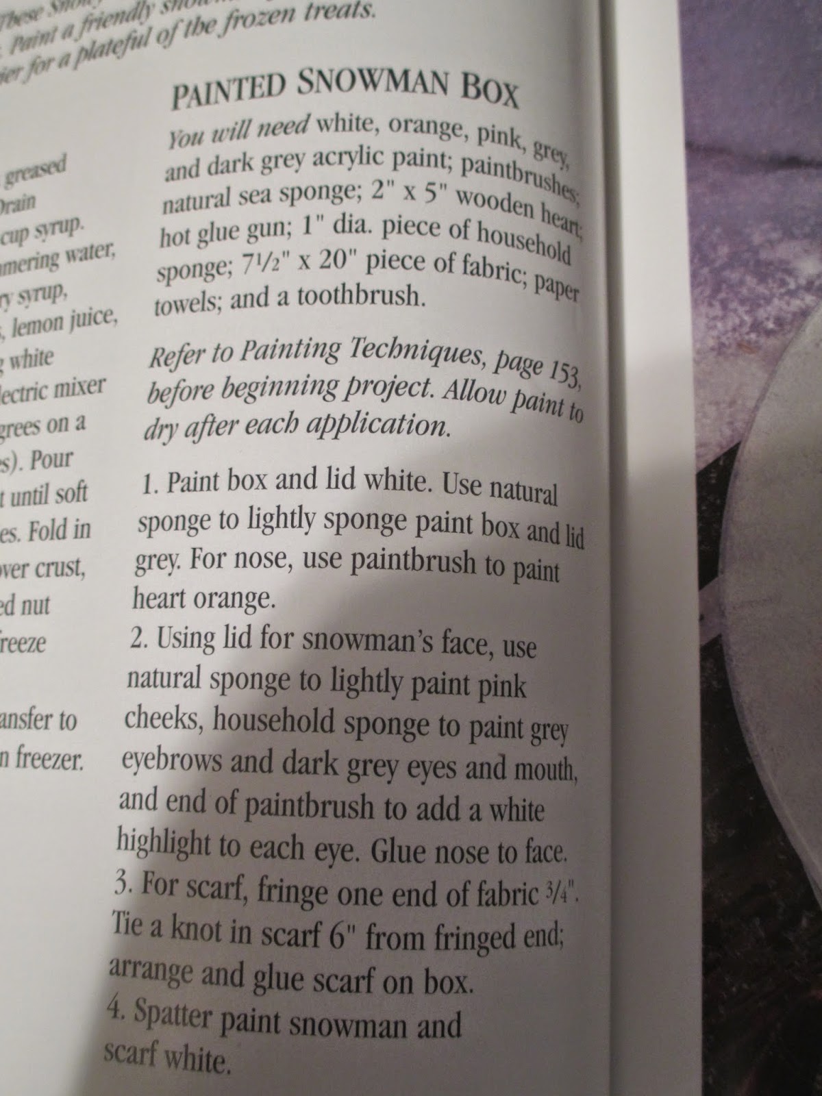Using any size of round box you can paint a snowman on it and add a scrap piece of material for a scarf. Or possibly fix with a real scarf to add another gift. I included the instructions for it but you can easily paint your own face.